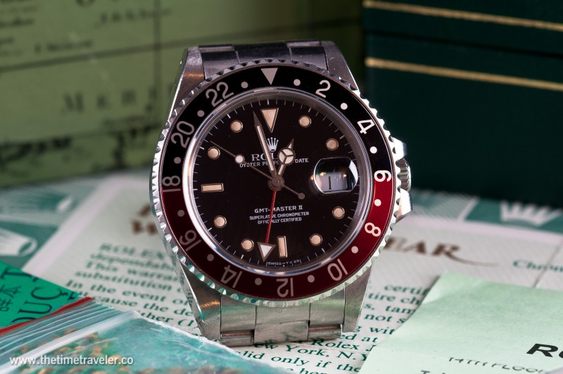 a great full set of the sought after GMT master with the super sized case...often known as the fat lady,this example is in fine condition with a crisp full case and choice of three different bezel inserts to suit your mood.